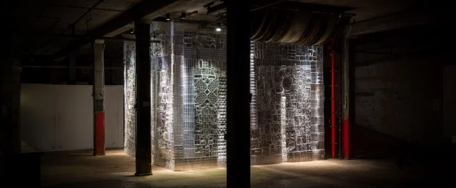 Thousands of plastic packages were sourced from consumers and producers in the artist’s community and woven together into a towering monument to tell the story of the sensitive state of our environment and the divergent possibilities of the human legacy. Drawing inspiration from the architecture and glyphic writing systems of ancient burial memorials, Blister Pact presents a physical narrative of the community’s consumer patterns today.